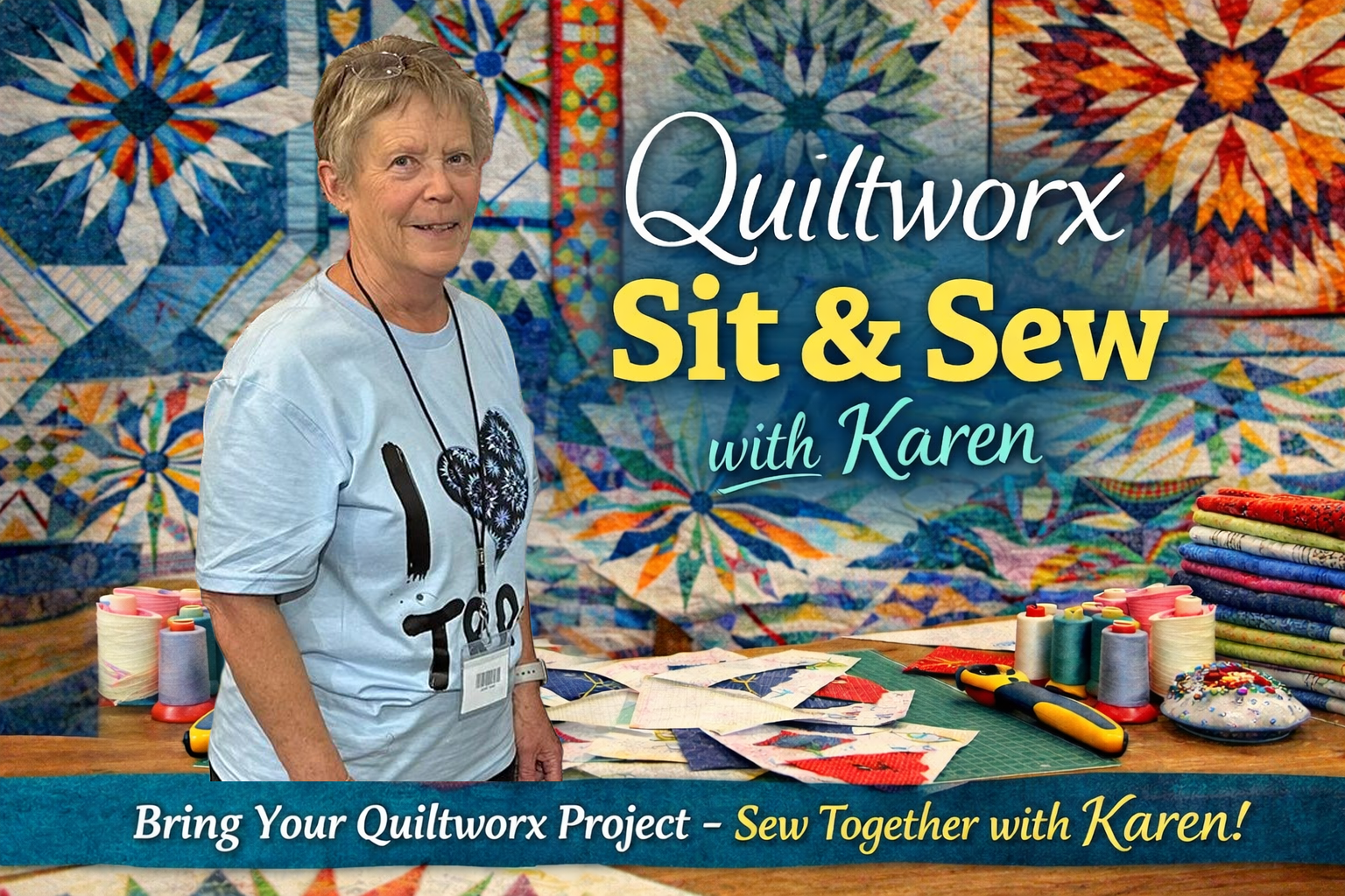 Have unfinished Quiltworx projects? Come spend the day sewing with Karen. She will be there to provide guidance and answer any questions you may have.